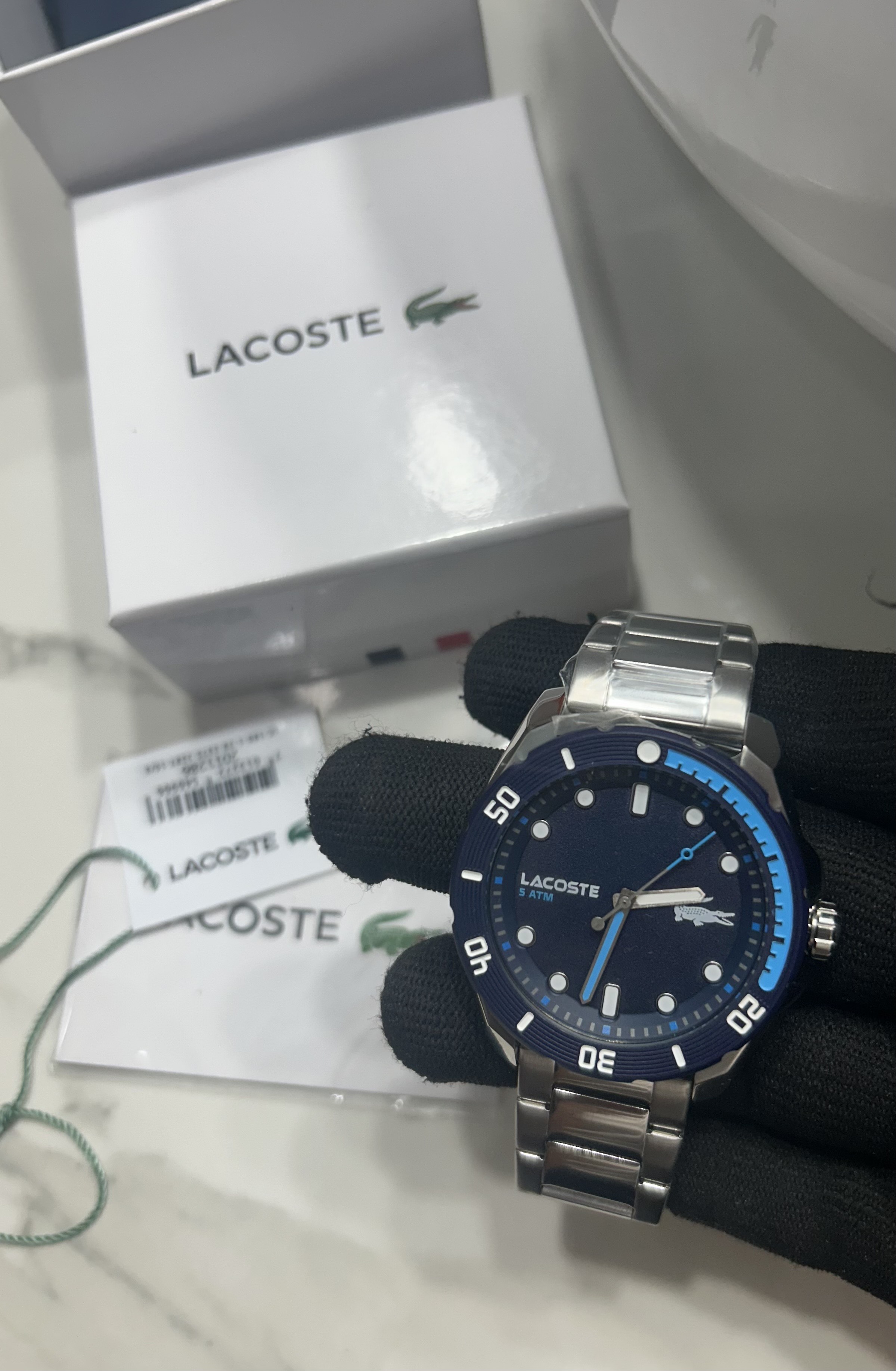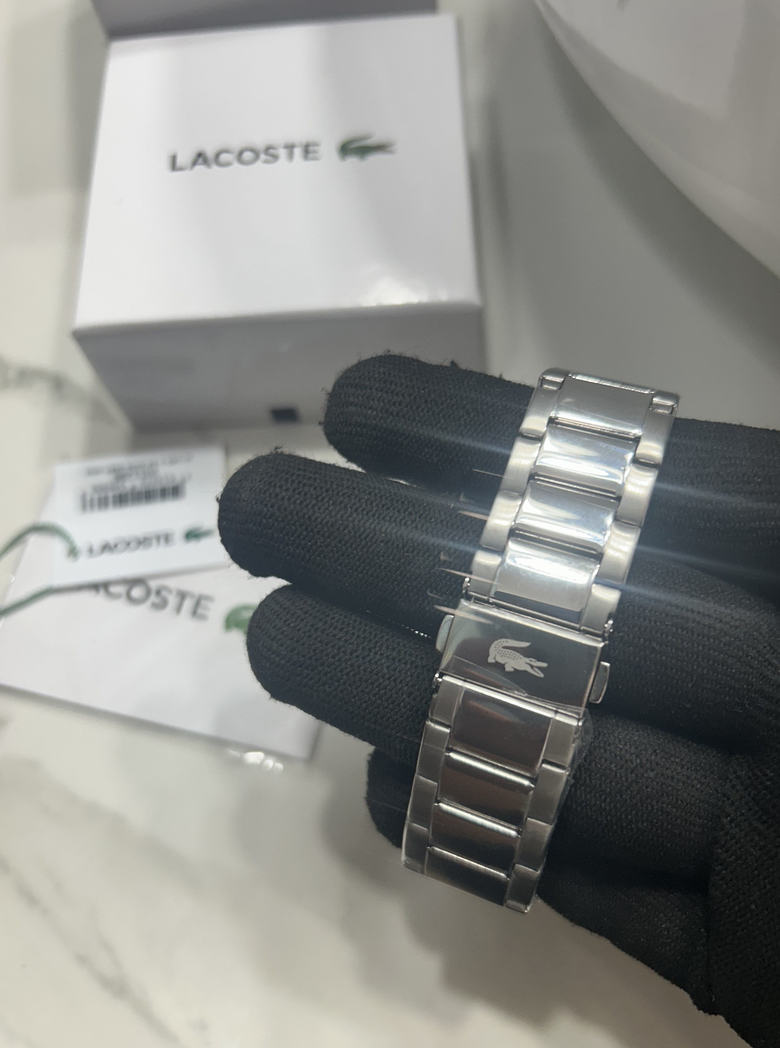 El limitado y elegante Lacoste Finn 3H Reloj de cuarzo resistente al agua con pulsera de eslabones, modelo 2011286,lujo en su maximo explandor